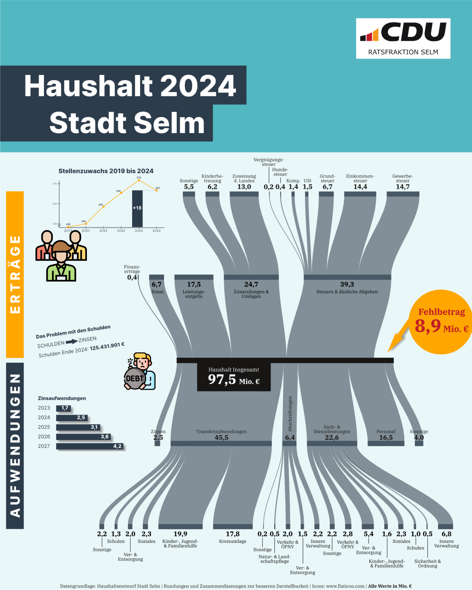 Haushalt 2024 der Stadt Selm als Sankey-Diagramm