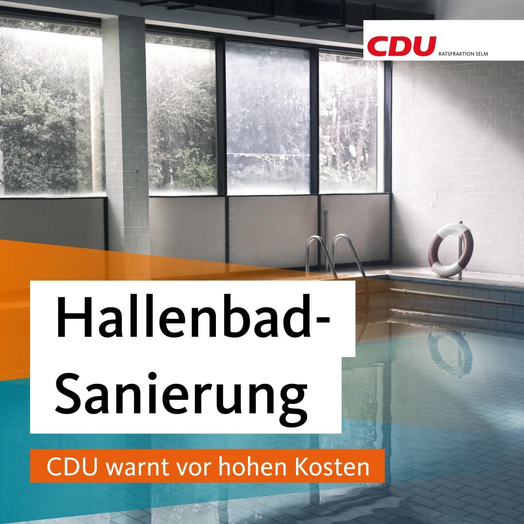Den Ruhr Nachrichten konnte im Zusammenhang mit der Berichterstattung über das Schulschwimmen im Selmer Hallenbad entnommen werden, dass die Stadtverwaltung weiterhin von Sanierungskosten in Höhe von 3,3 Mio. Euro ausgeht. Diese Darstellung irritiert die CDU-Fraktion mit Blick auf den am 16.12.2021 beschlossenen Haushaltsplan für das Jahr 2022: Dort sind in der Mittelfristplanung für die Sanierung des Hallenbads nämlich bereits 4,5 Mio. Euro angesetzt.