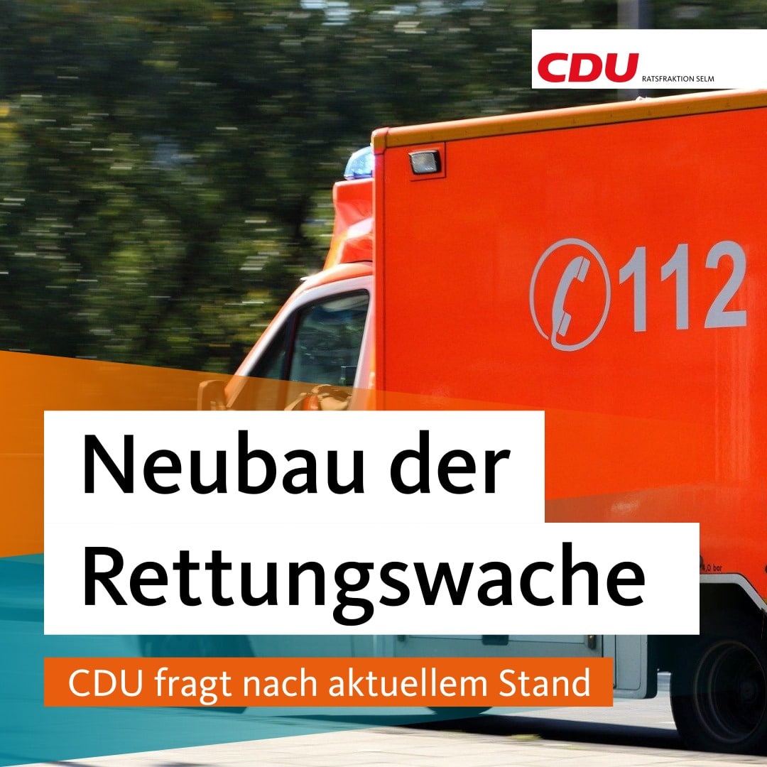 Aufgrund des aktualisierten Rettungsbedarfsplans für den Kreis Unna ist in der Stadt Selm der Neubau einer Rettungswache erforderlich. Der Rat der Stadt Selm hat beschlossen, dass diese den Neubau selbst vornehmen und nicht von Dritten durchführen lassen wird. Die zügige Umsetzung der Rettungsbedarfsplanung ist für die CDU-Fraktion im Rat der Stadt Selm von besonderer Bedeutung, denn das Rettungswesen ist ein wesentlicher Baustein der lokalen Sicherheitsarchitektur. Insoweit besteht ein Interesse daran, die neue Rettungswache möglichst zeitnah in Betrieb nehmen zu können.